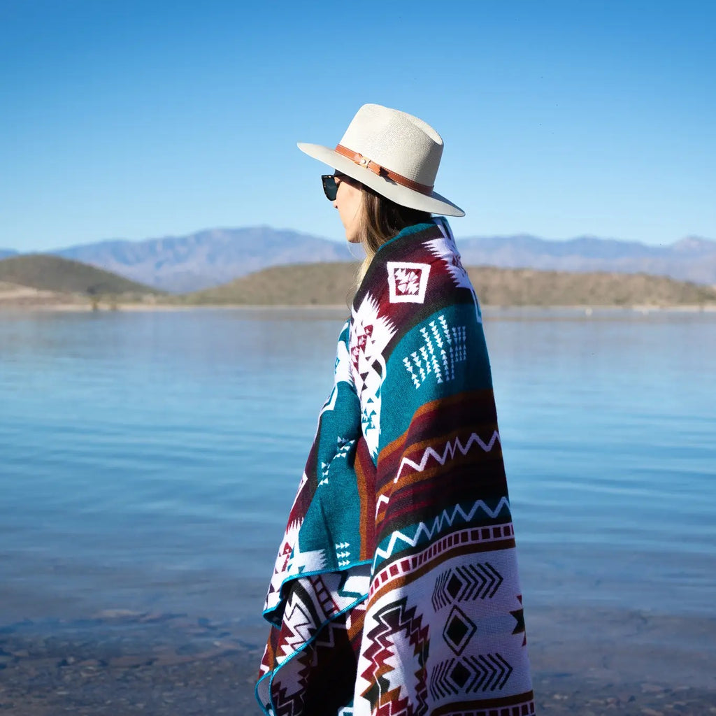 Turquoise Andean Alpaca Wool Blanket - Queen Size