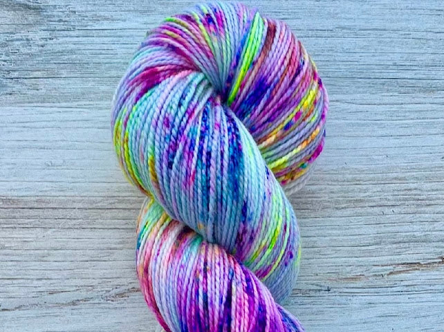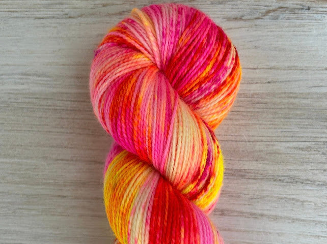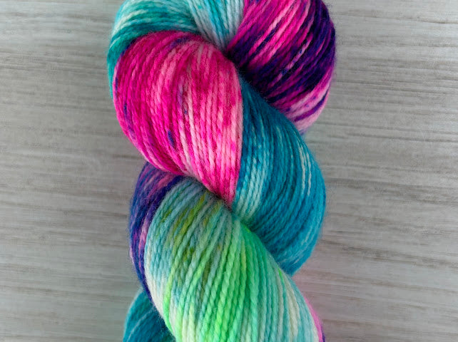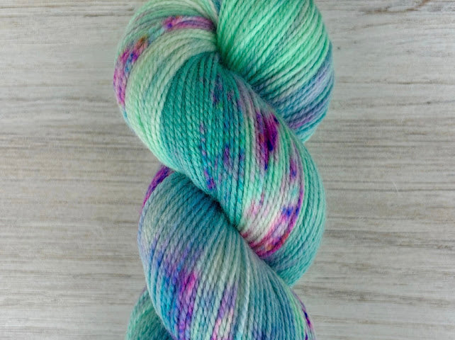 A fabulous fingering weight 80% superwash merino, 20% nylon yarn has 2-ply construction with a very tight twist. It's a sturdy blend of wool and nylon for elasticity and warmth. The stitch definition makes this yarn great for socks, lightweight sweaters, and accessories.