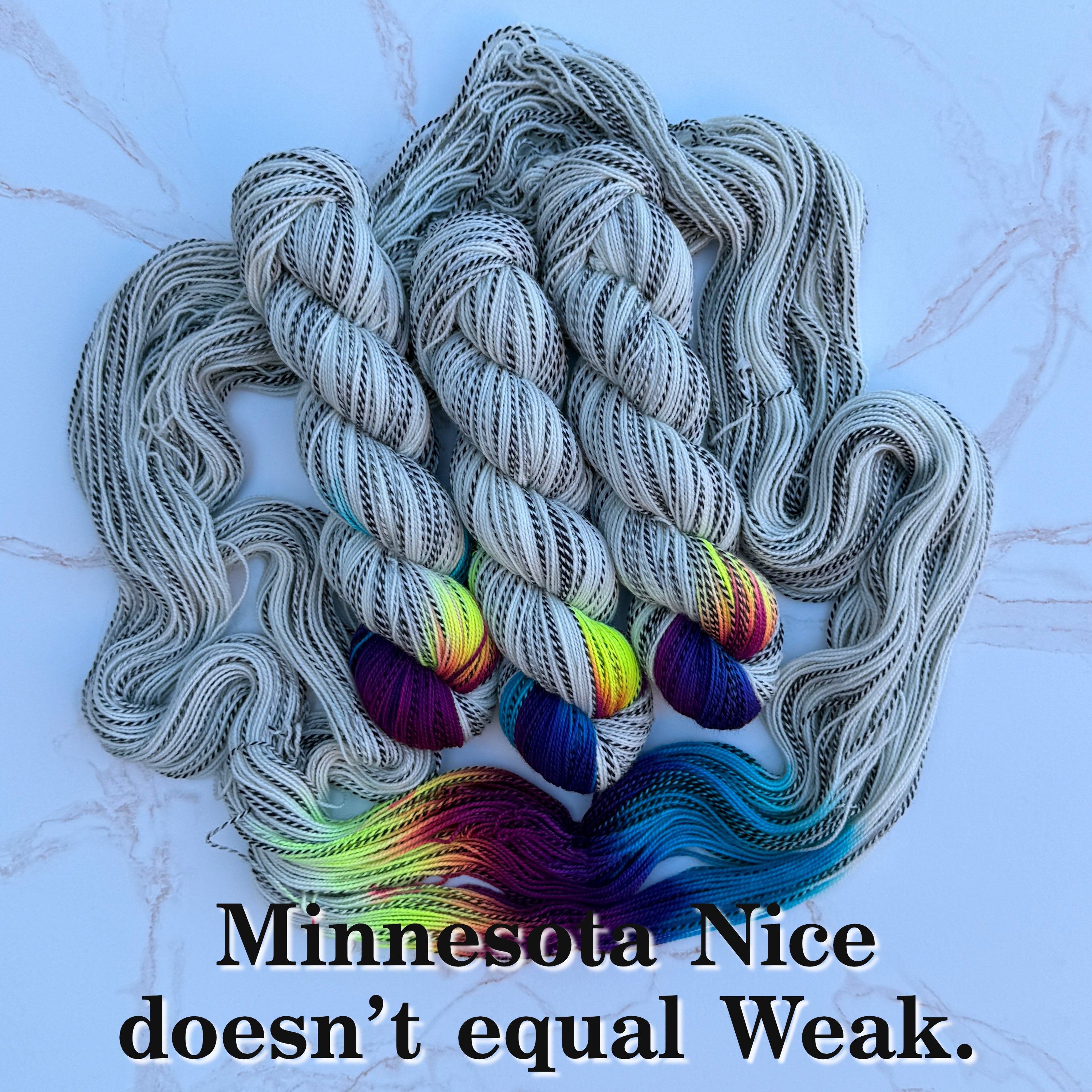 Zebra Shit Sock is a super soft fingering weight yarn with a touch of nylon. This super squishy and colorful yarn is perfect for all the things!