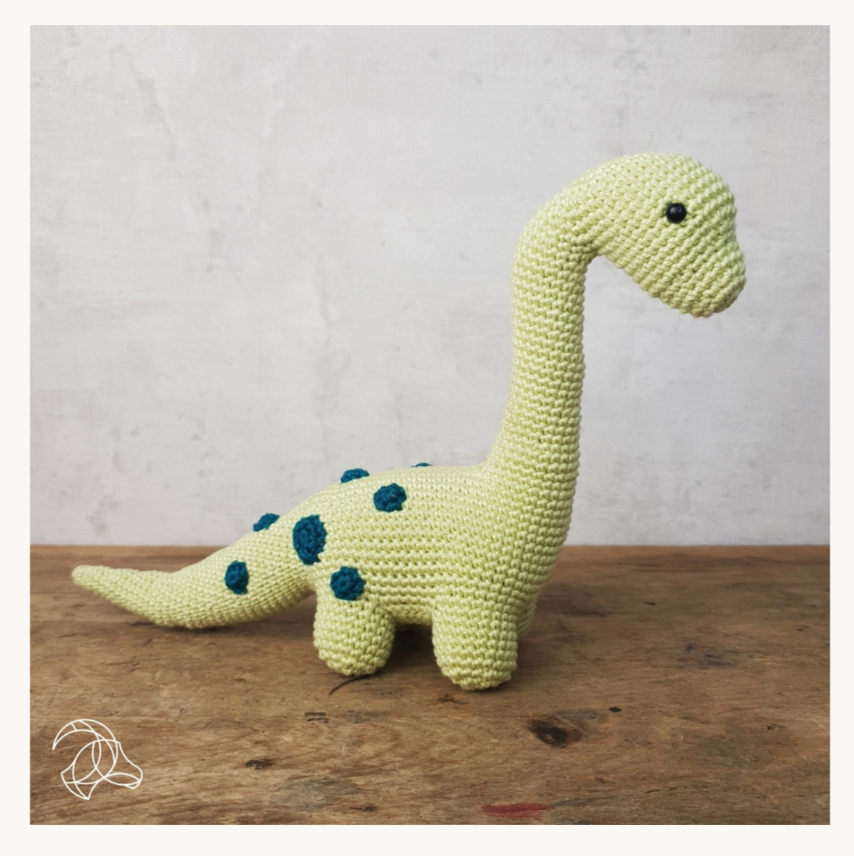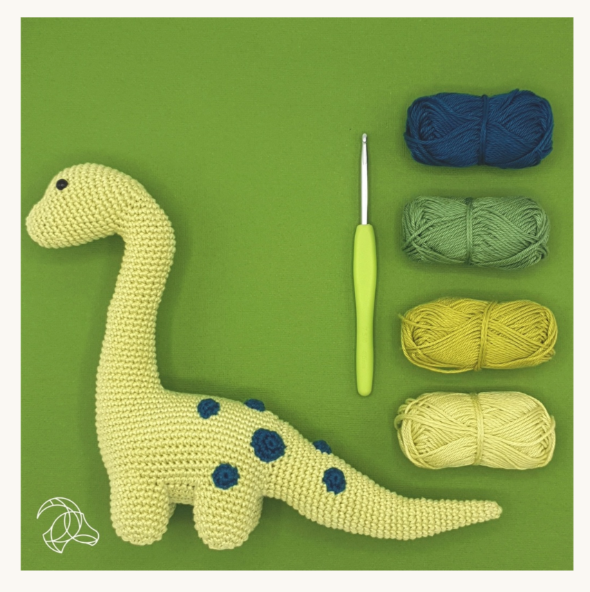 Bring the Brontosaurus back to life with your next crochet project! The Brontosaurus makes an excellent gift for all dinosaur enthusiasts in your life. This kit contains a pattern, quality 100% cotton yarn, and all of the materials needed to get to work (excl. crochet hook). The Brontosaurus is approximately 20 cm tall and 27 cm long and is made with a 2.5 mm crochet hook.