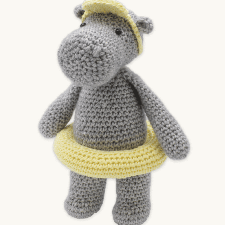Meet Henny! With her pool ring and visor hat in tow, this hippo is ready to splash into summer. This kit contains a pattern, quality blended yarn, yellow cotton yarn and all of the materials needed to get to work (excl. crochet hook). Henny is approximately 20 cm tall and is made with a 3.0 mm crochet hook.