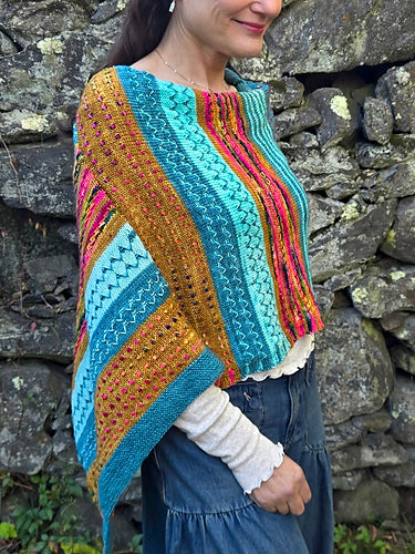 20 (23)”/51(58.5) cm wide (note that wideness is represented in an up and down manner when seamed.) Shown in the smaller size with a 30”/76cm neck opening (easy to stitch to make smaller), and 18” /46 cm height from neck to bottom.