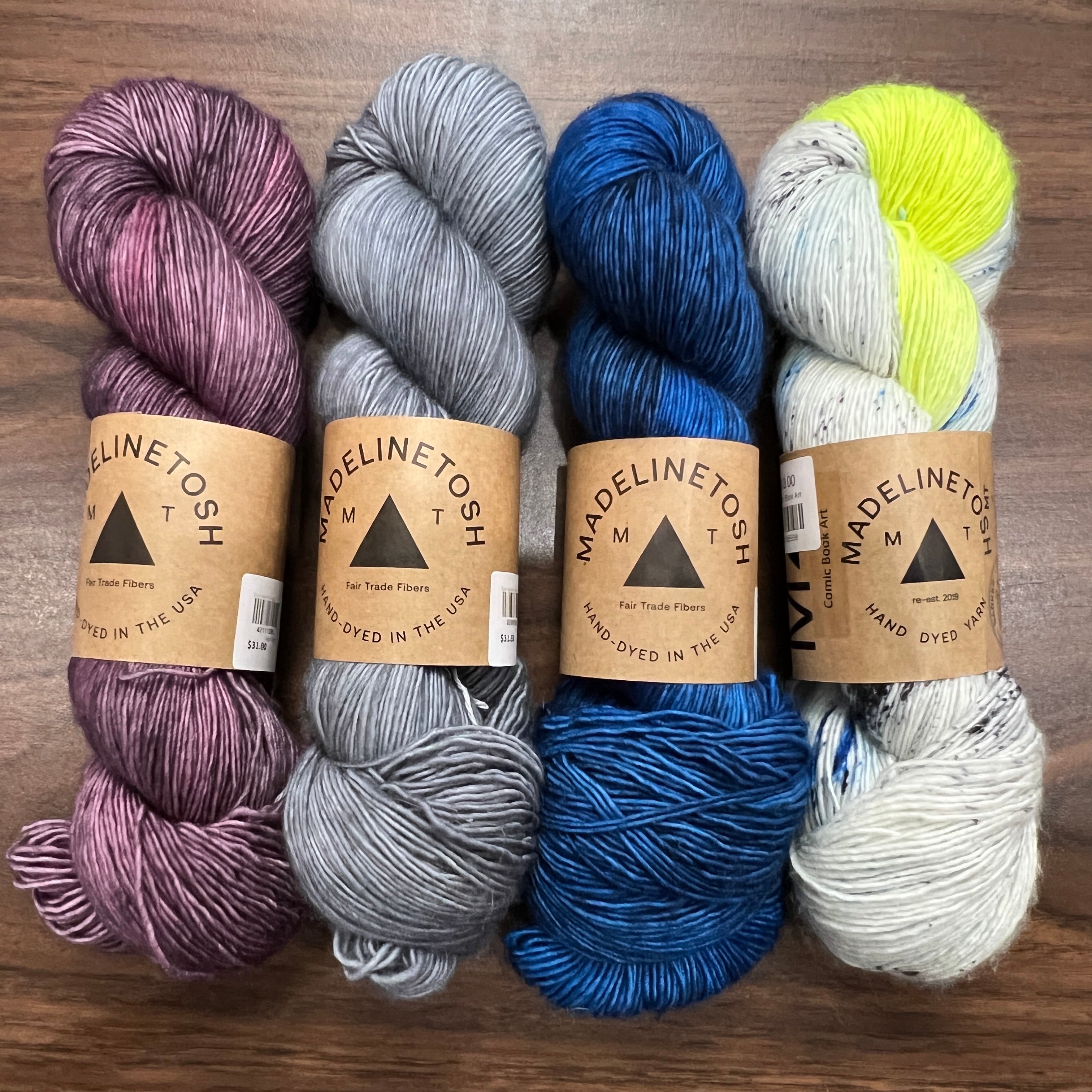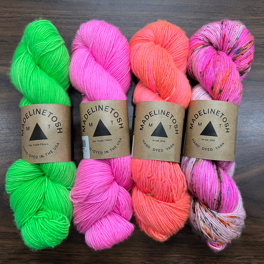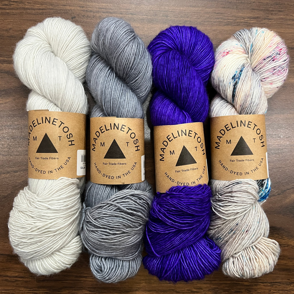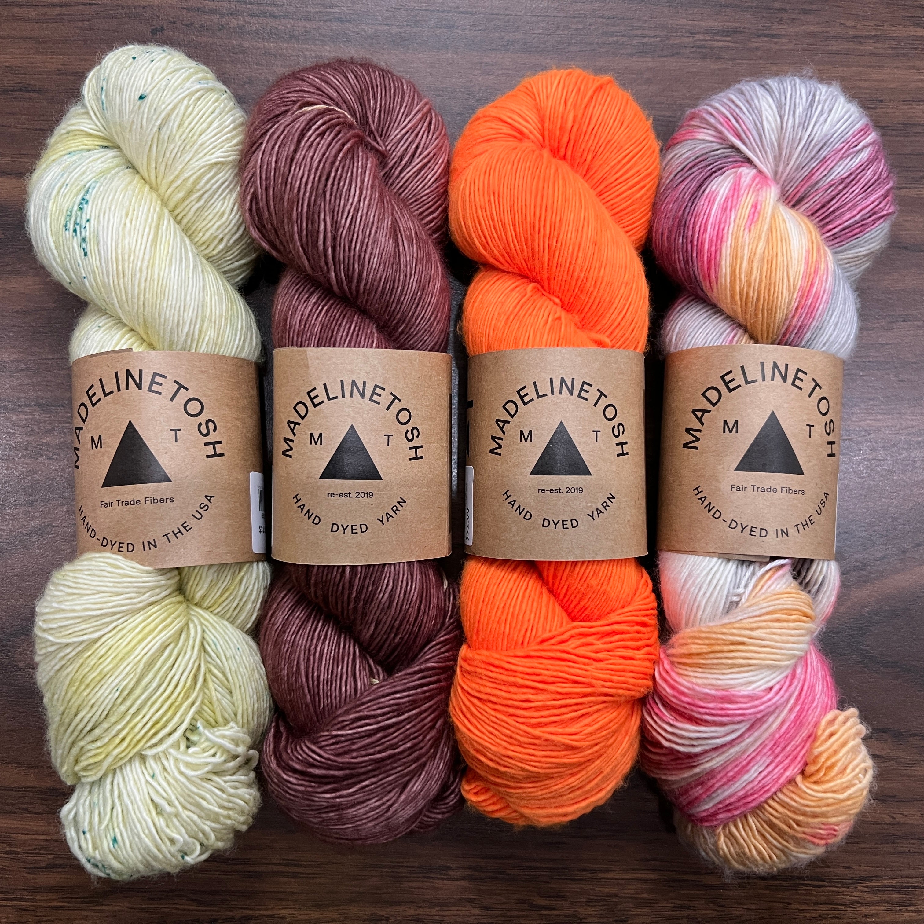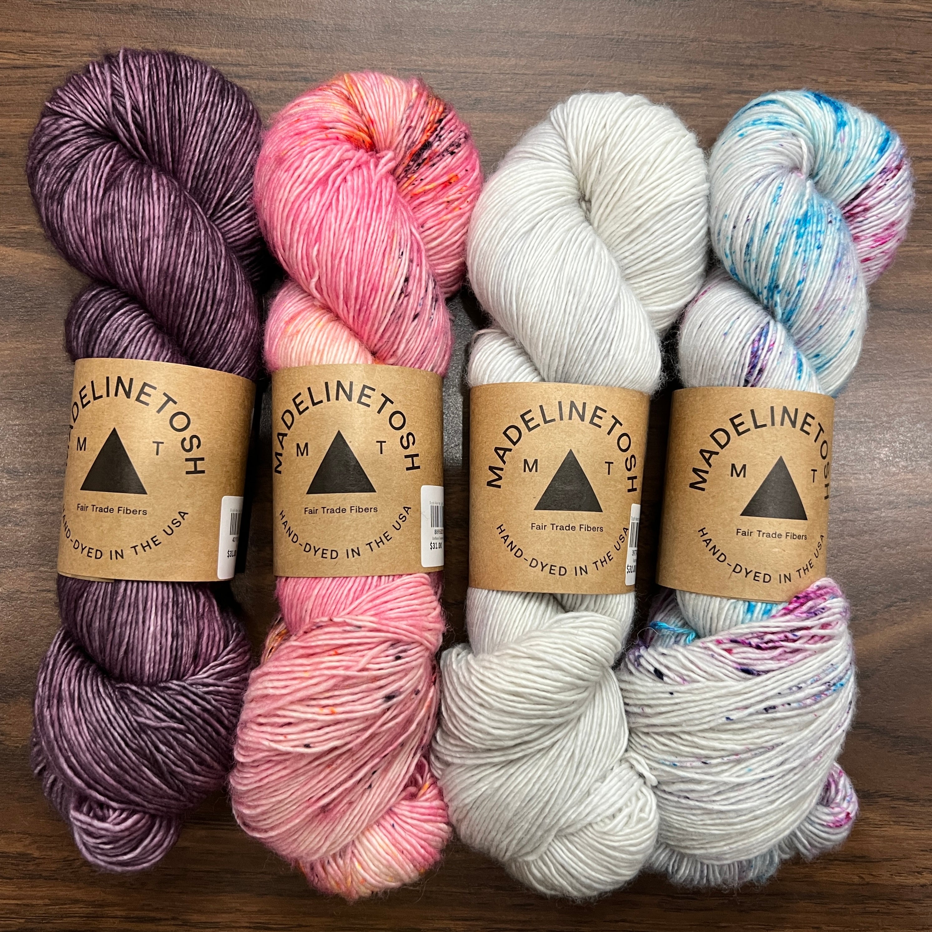 The bundle includes: 4 skeins of Tosh Merino Light 420yds fingering weight yarn