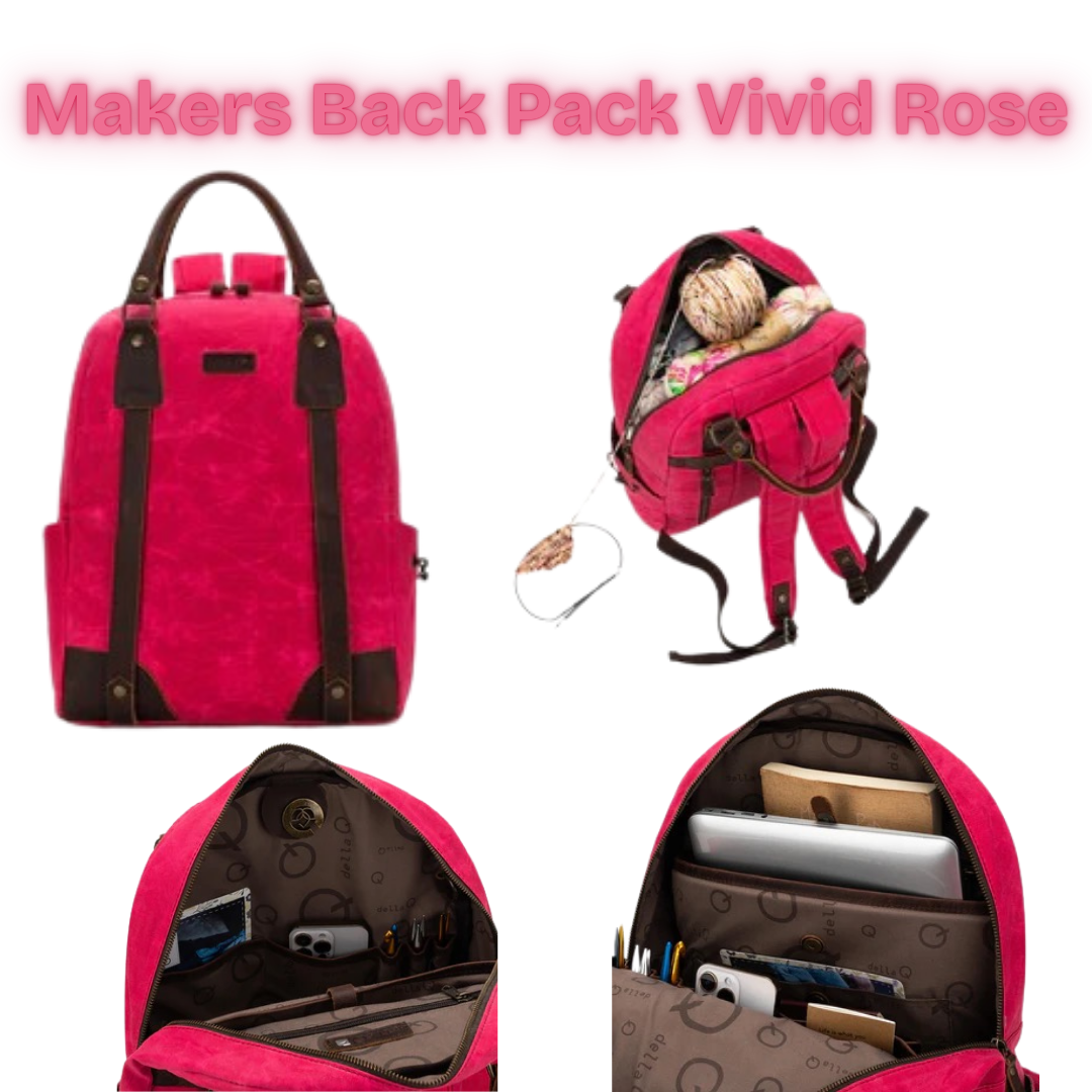 - Exterior front zip pocket, two main zip compartments, and interior needle/pen and phone pockets yarn feeder and yarn cutter