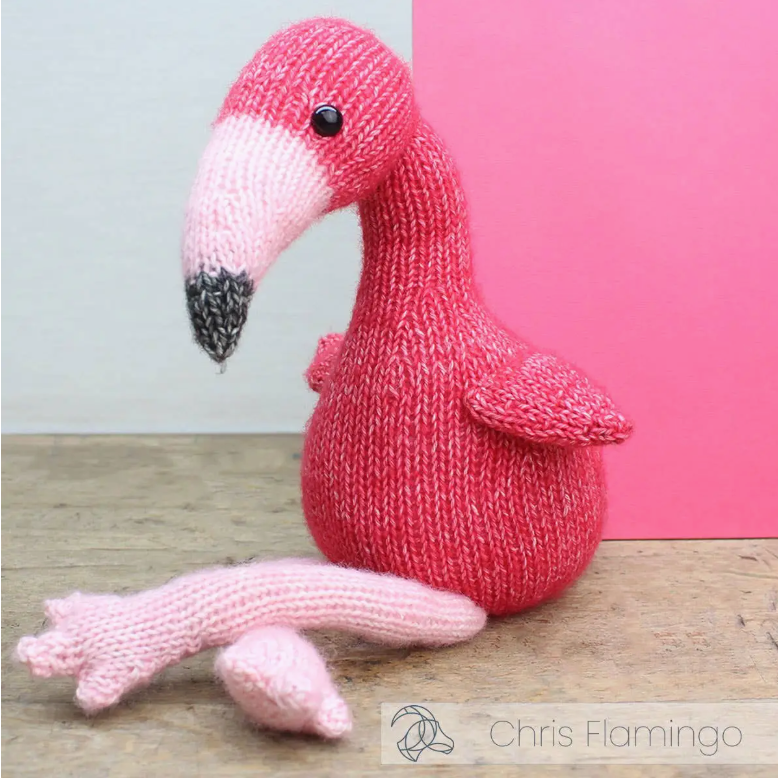 Chris Flamingo is a new addition to our animal range. Not only does it look cute, but its bright colors make it a great addition to any knitted collection! This package contains a pattern, quality mixed yarn and all the supplies needed to get started (excl. knitting needles). Chris is approximately 37cm long and is made with 3mm knitting needles.
